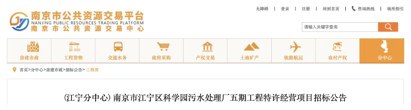 超10.34亿!南京市污水处理厂特许经营项目招标
